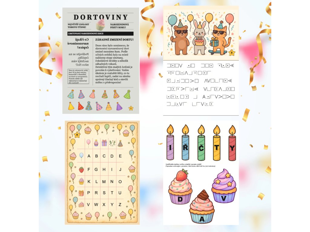 Šifrovací úniková hra na narozeninovou oslavu: pdf k vytištění a přípravě doma.